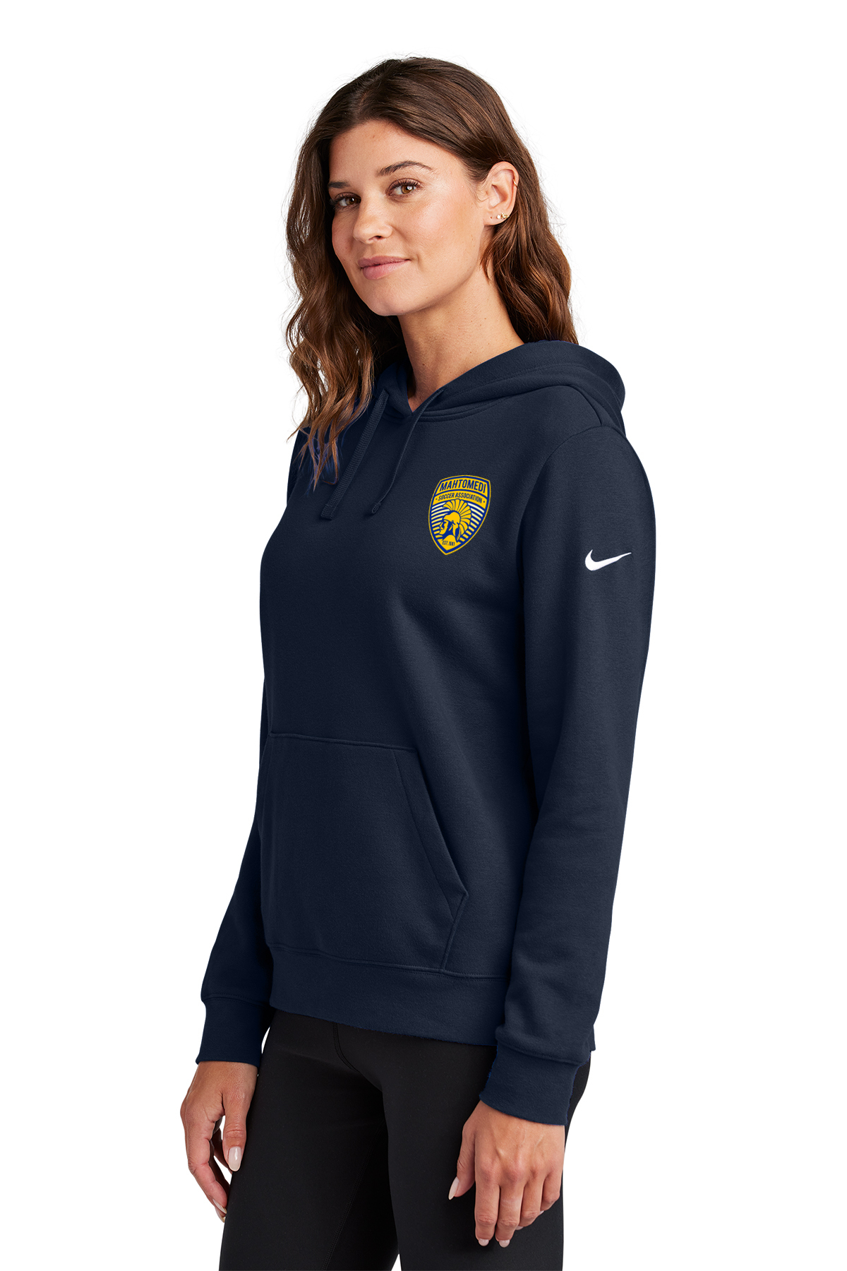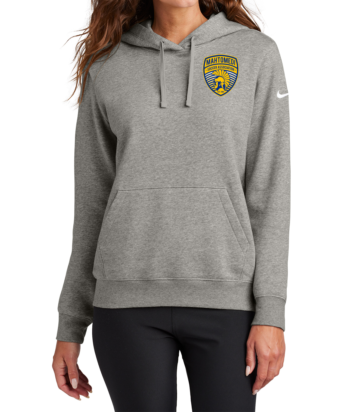 This brushed-back fleece hoodie is where comfort meets street-ready Nike style. Jersey-lined, three-panel hood with dyed-to-match drawcords and zipper. Front pockets. Rib knit cuffs and hem. A contrast Swoosh logo is embroidered on left sleeve. Made of 8.2-ounce, 80/20 cotton/polyester.