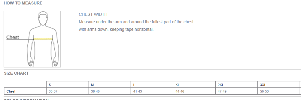 Click to view sizing chart.